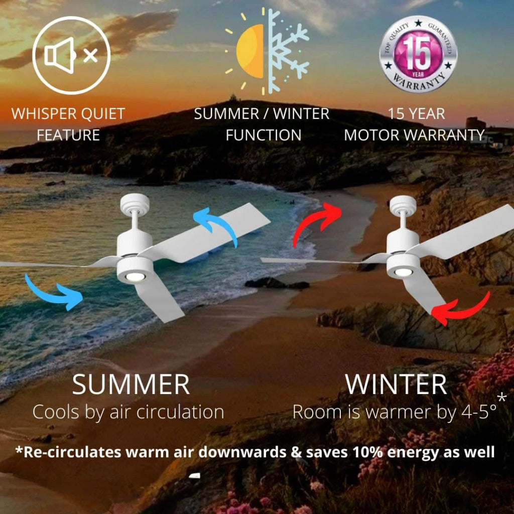 JS-LXR Modern Designer 50″ Ceiling Fan LUX 1001-4B Matt White Body & 4 Durable ABS Blades